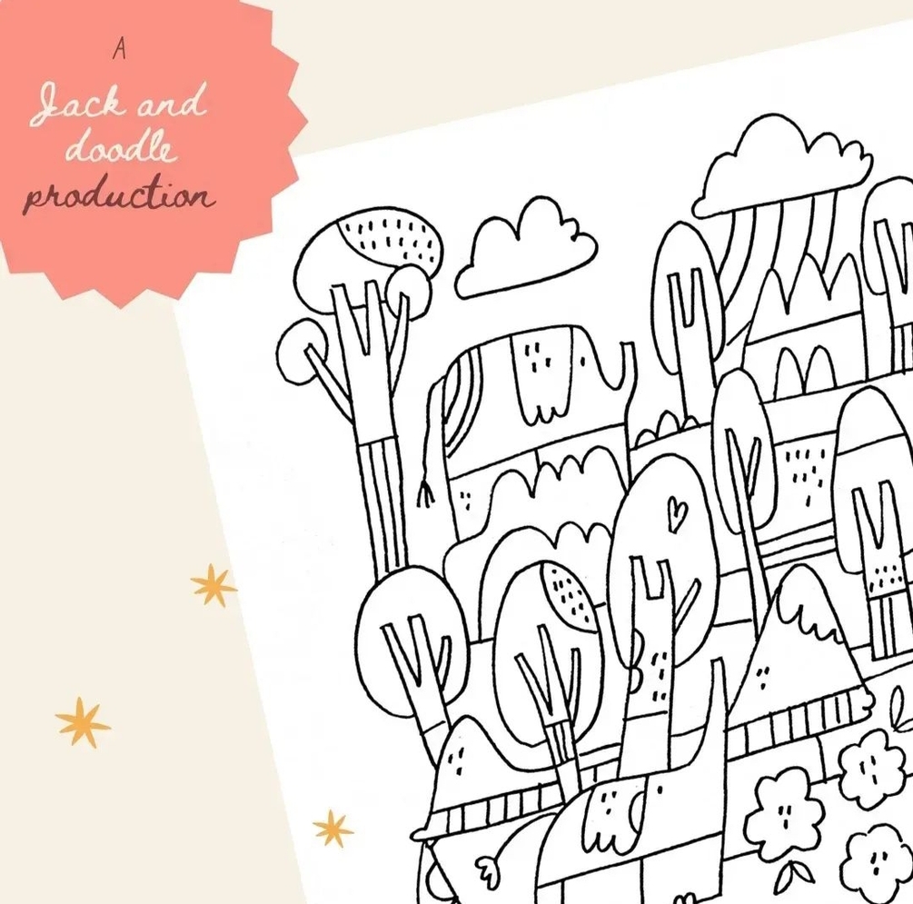 A pdf containing 5 handrawn coloring sheets which can be easily printed on an A4 sheet