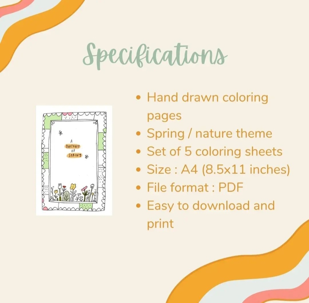 A set of 5 printable coloring sheets inspired by spring.